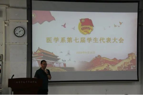 大会第六项,医学系党总支书记樊红亮做重要讲话 。