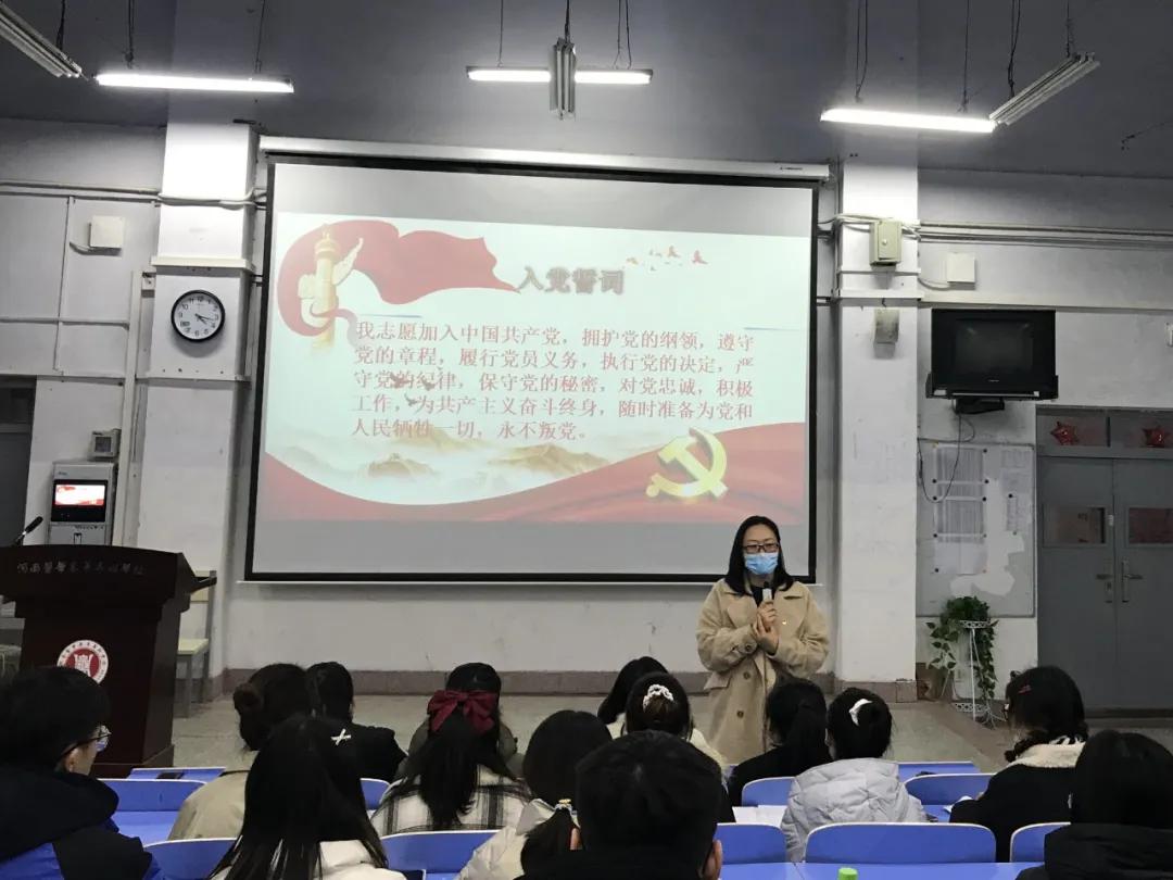 2020年12月5日下午3点30分,医学系党总支员工第一党支部在三区101召开党员转正大会。员工第一党支成员吕阳老师主持本次会议,员工第一党支部成员以及18级16名预备党员参加此次会议。